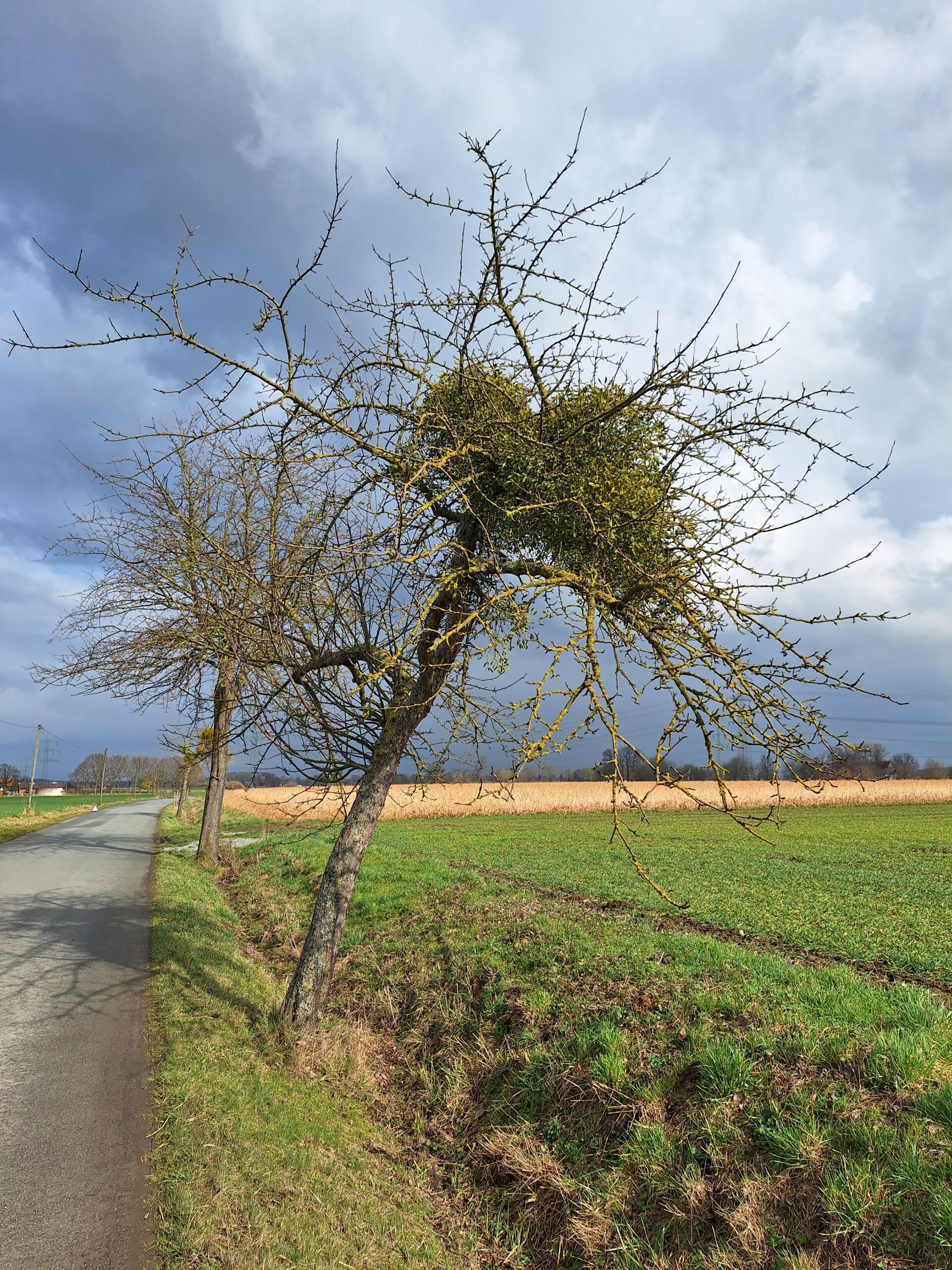 Die weißbeerige Laubholzmistel (Viscum album) soll Thema dieser Webseite sein, die von dem im Kreis Soest ansässigen Verein strassenbaum e. V. erstellt wurde. Unser Verein, der sich um Straßenbäume, aber auch um Obstbäume auf Streuobstwiesen und in Privatgärten kümmert, stößt bei seiner Arbeit immer häufiger auf Bäume mit stark fortschreitendem Mistelbefall, der teilweise schon zum völligen Absterben der Bäume geführt hat.