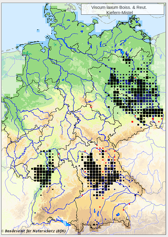 - Viscum laxum, die Kiefernmistel, und ganz vereinzelt an der oberen Elbe vor einigen Jahren erfasst