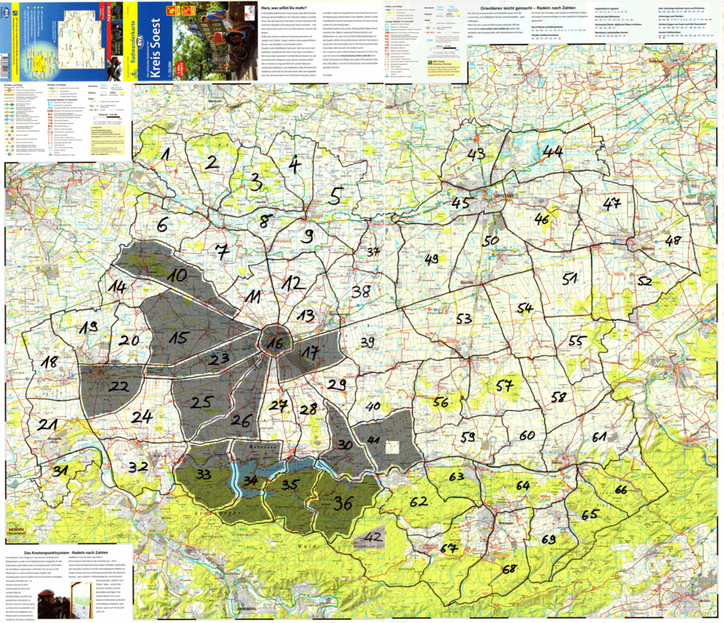 Die Karte basiert auf „Radwanderkarte Kreis Soest“ (ISBN 978-3-96990-033-8) von BVA BikeMedia GmbH, Niederwall 53, 33602 Bielefeld und wurde mit Erlaubnis hier veröffentlicht.